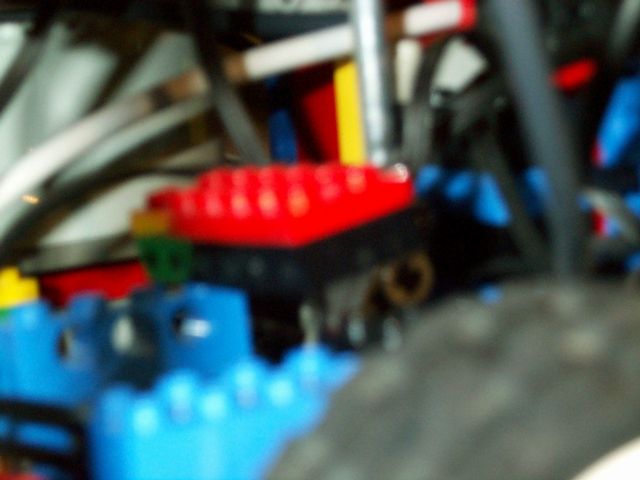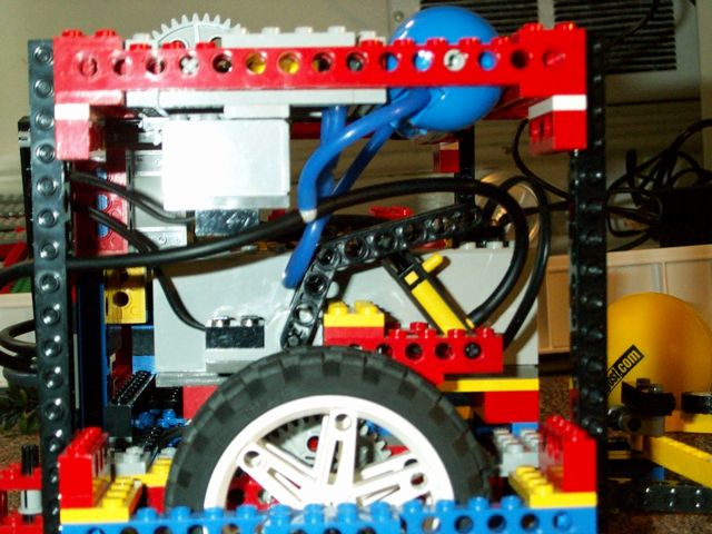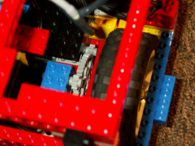 Here you can see all the wheels, the drive motors, and the 4x10 plate which provides a lower limit for the claw.
