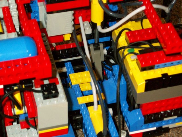 The claw gripping an object. Here you can see the 1x4 tiles the claw rests on in its down position.